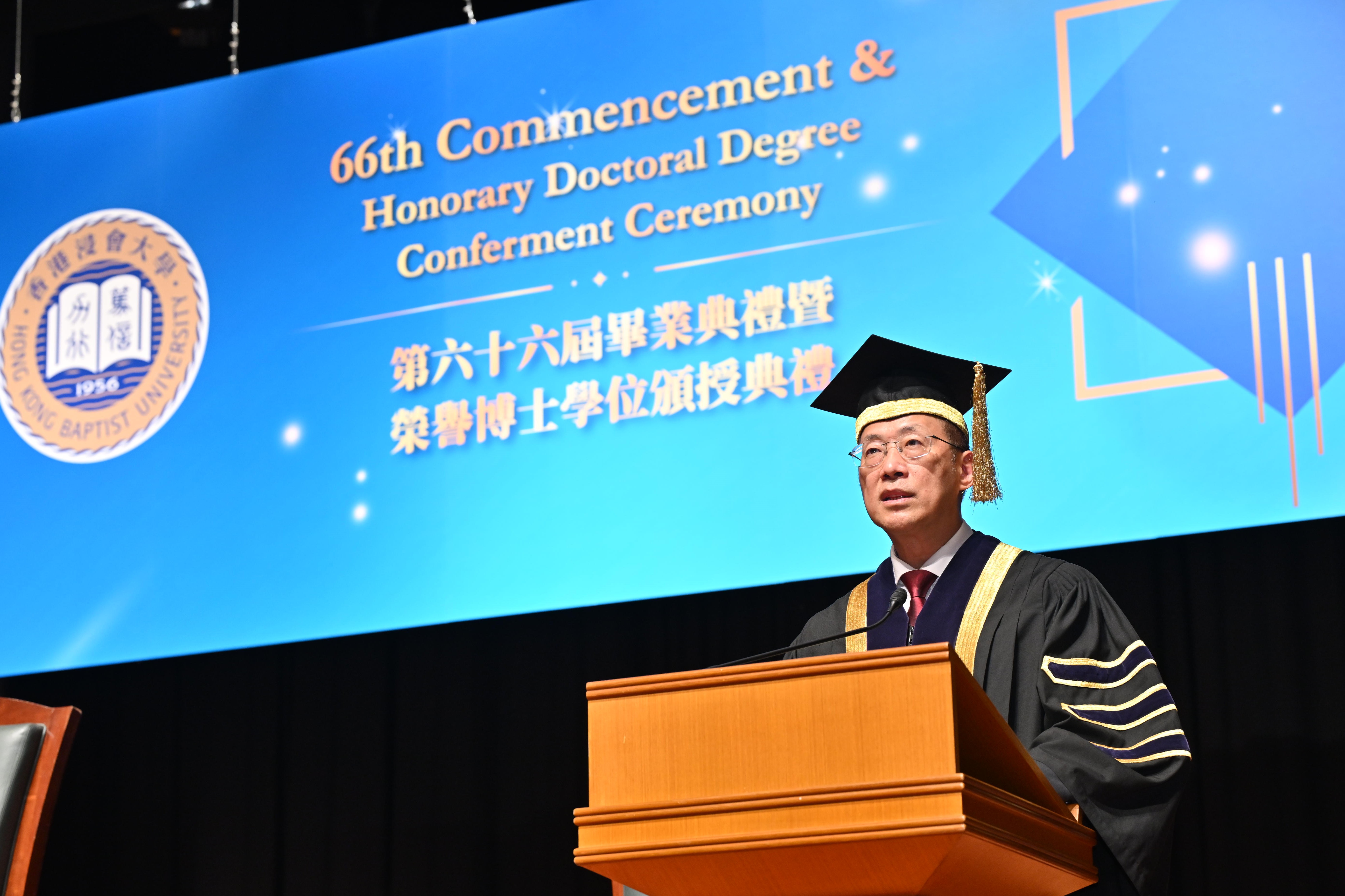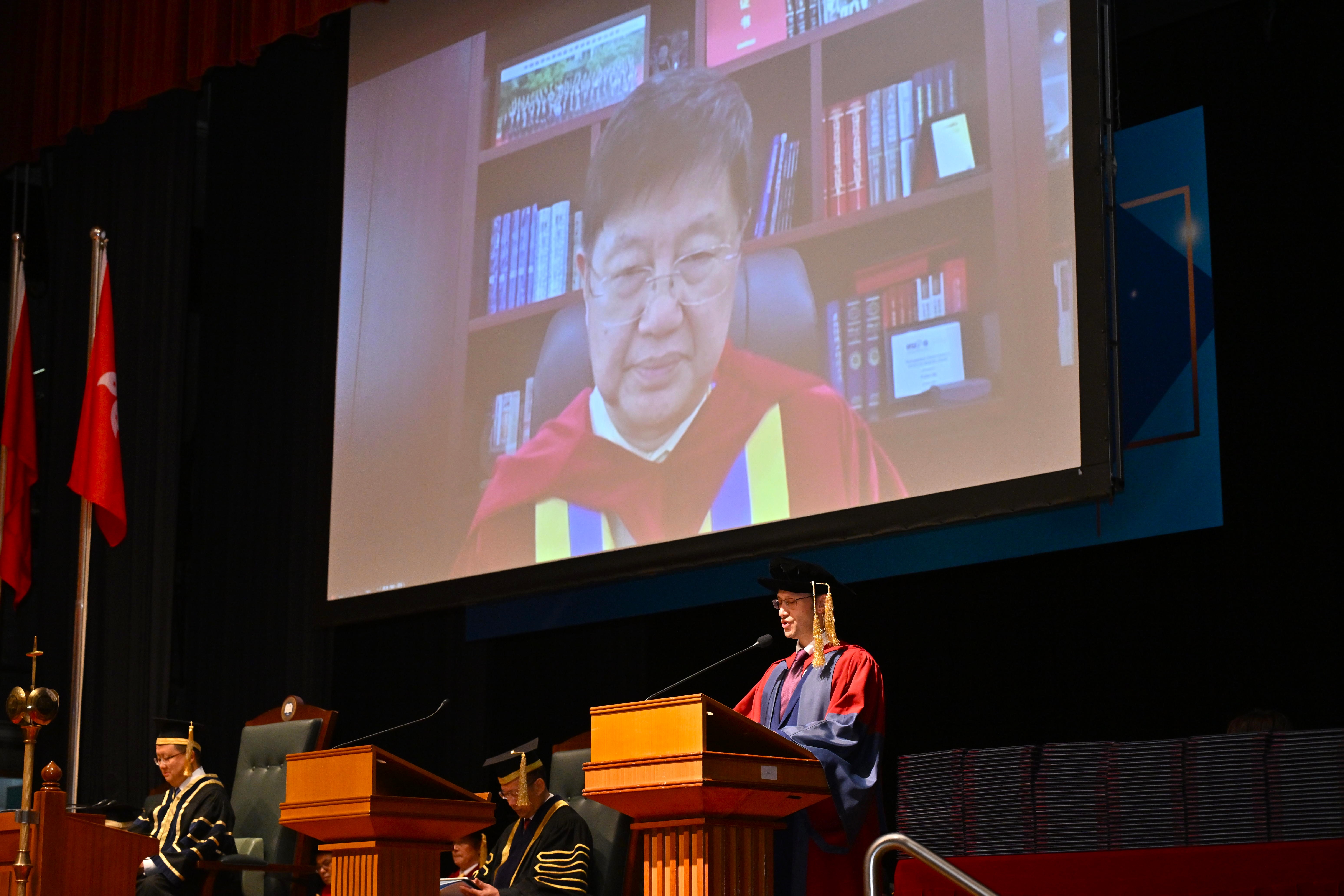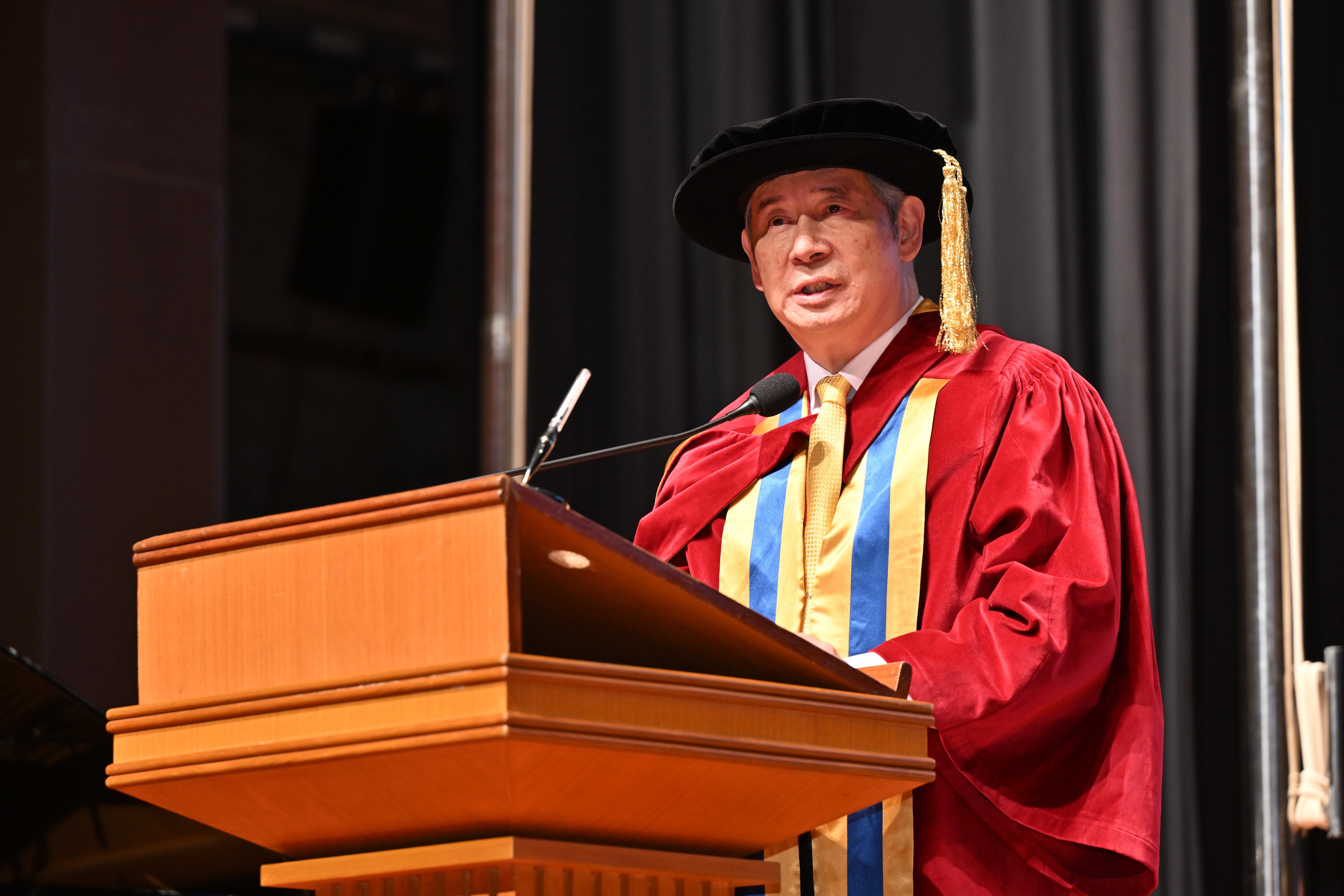 Speaking at the ceremony, Professor Alex Wai, President and Vice-Chancellor of HKBU, praised the three honorary doctoral degree recipients for their exceptional talent, continuous innovation, and contributions to society. He remarked that they have each shone brightly in their respective fields, setting an example for all.