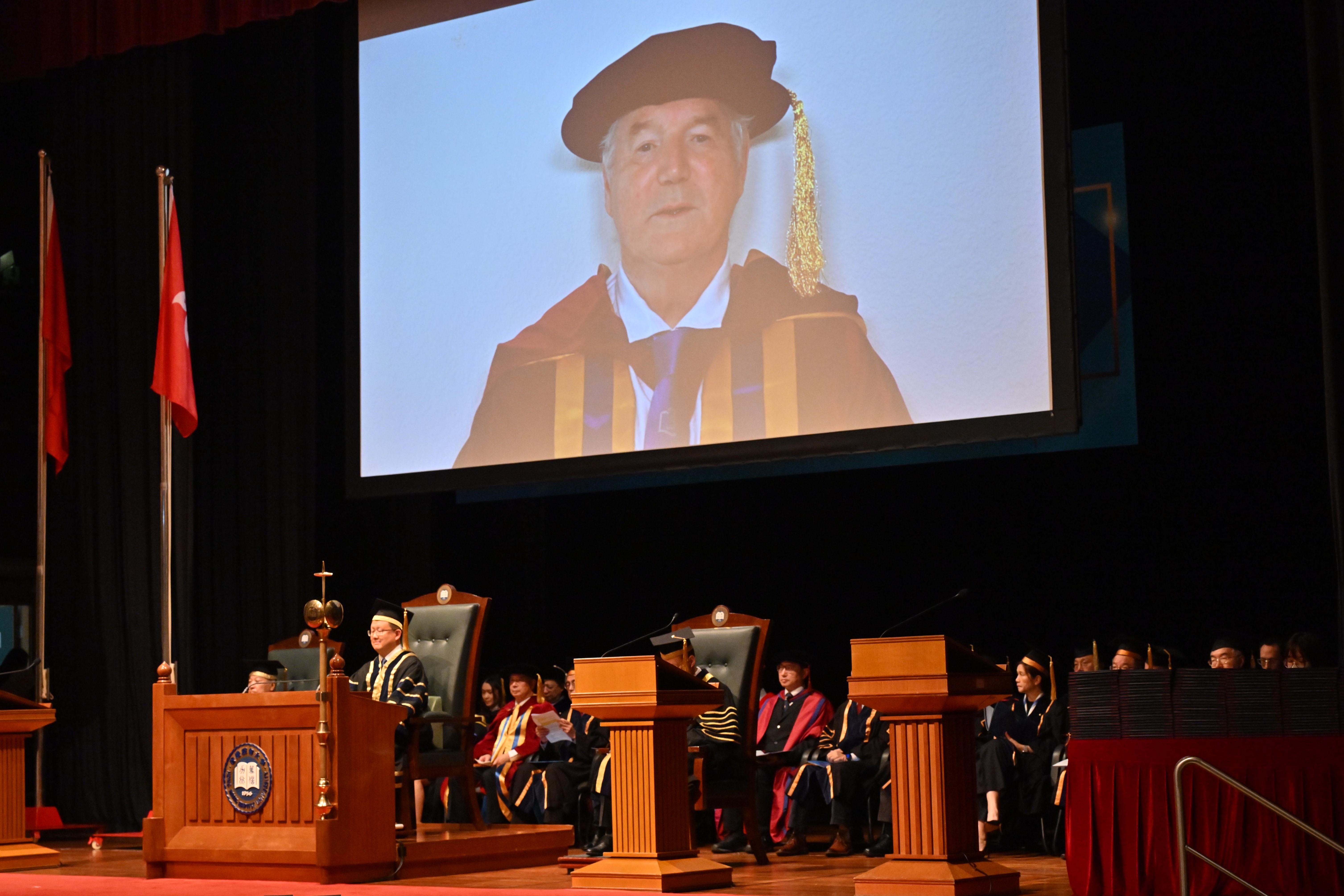 Professor Sir Michael Houghton shared his advice to HKBU graduates through a pre-recorded video. “I have observed a university that does not just want to educate its students but one that emphasises the importance of always keeping minds open to learning and discovering new things and developments. My career advice to you would be firstly for you to find your true passion whatever it is, and then if you believe you might be equipped to succeed in your chosen field, then pursue your objectives with determination and perseverance,” he said.